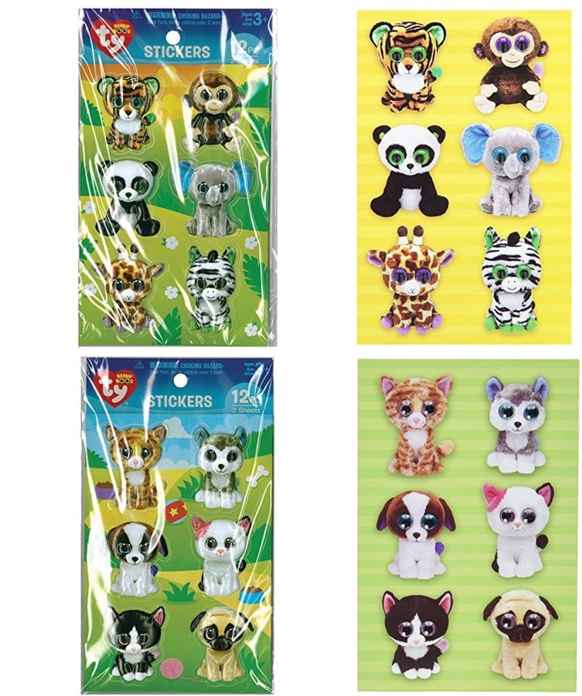 Ty Beanie Boo Sticker 4 Pack Set 12 Pack Jungle Pets Wiggle Eyes Walmart Com